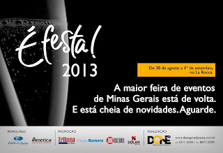É Festa! é a maior feira destinada à promoção de produtos e serviços para o segmento de eventos em Minas Gerais. De forma inovadora, em sua segunda edição, o espaço apresenta diversas opções aos visitantes que buscam profissionais e empresas capacitadas para realizar seu aniversário, formatura, casamento, congresso, palestra, evento empresarial, viagem, entre outros.