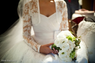 A dica para as noivinhas que se casam no frio são os vestidos de noiva com mangas (compridas ou médias). Seja uma combinação de bolero ou casaqueto com tomara-que-caia ou parte do próprio vestido, as mangas podem ser delicadas, proteger os braços e dar um ar chique à noiva e ao casamento!